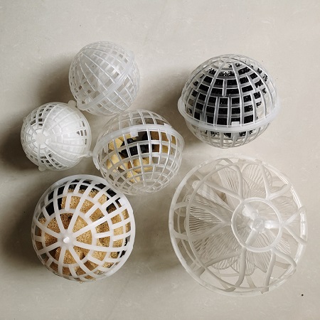 懸浮球填料,又稱多孔旋轉球形懸浮填料,是對國內處理污水、生物膜法處理技術采用的多種填料中開發的新材料。在污水的生化處理中具有全立體結構,比表面積大,直接投放,無須固定,易掛膜,不堵塞。