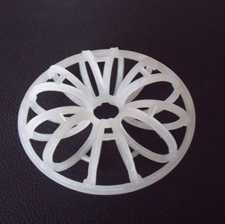 花環(huán)填料的主要特點是填料的空隙率大,不易被堵塞,還有通量大、阻力小等優(yōu)點,花環(huán)填料也稱梅花環(huán)填料是由許多圓環(huán)結(jié)繞而成,由于填料的空隙處能有較高的持液量,由于這種填料的間隙處能有較高的滯液量,可使塔內(nèi)液體停留時間較長,從而增加了氣液的接觸時間,提高了填料的傳質(zhì)效率。聚丙烯填料具有空隙率大,壓降和傳質(zhì)單元高度低,泛點高,汽液接觸充分,比重小,傳質(zhì)效率高等特點,多用于氣體洗滌、凈化塔中。